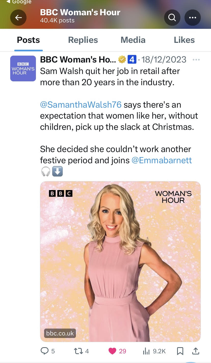 That evening, as I was alerted by my phone that my interview was being discussed across all of BBC4’s social media accounts and they were inviting me to collaborate on the posts, I had another pinch-me moment. The posts got thousands of likes, shares and comments, and the overwhelming feedback was in support of childless and childfree adults deserving equality at work.
